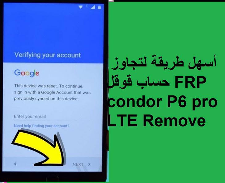 شرح طريقة تخطي حساب قوقل Frp Condor P6 Pro Lte Remove