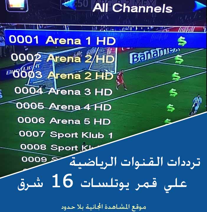 هنا تردد قناة أرينا سبورت. تردد قناة أرينا سبورت المفتوحة علي يوتلسات 2020. تنقل المباراة على القمر الصناعي يوتلسات 16 eutelsat 16 يعمل بالموقع المداري 16 درجة شرق وتردد قناة أرينا سبورت الأتي. وتبث قنوات أرينا سبورت الكرواتية على القمر الصناعي يوتلسات 16 eutelsat 16 على الموقع المداري 16 درجة شرق وهو قمر صناعي ملاصق للقمر الأوروبي هوت بيرد وسهل الاستقبال حيث تشمل تغطيته كل ا من مصر وشمال أفريقيا وتبث القنوات.