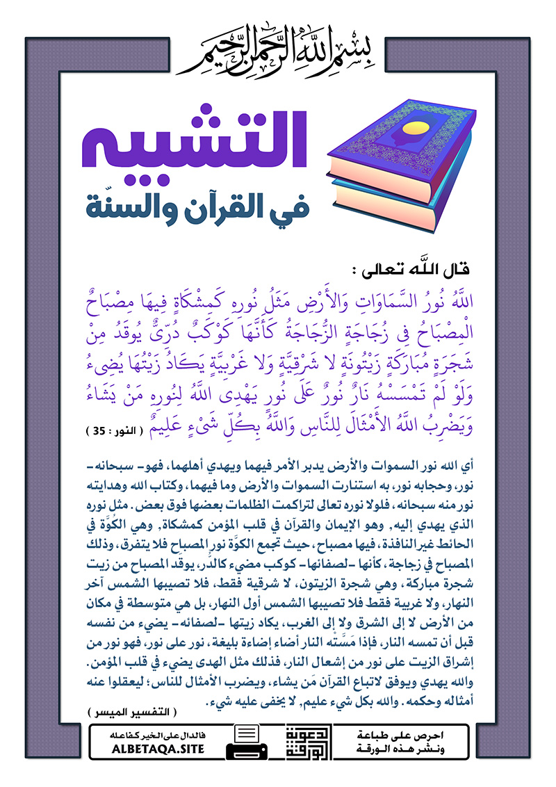 التشبيه في القرآن والسنة مثل نوره كمشكاة فيها مصباح موقع البطاقة الدعوي