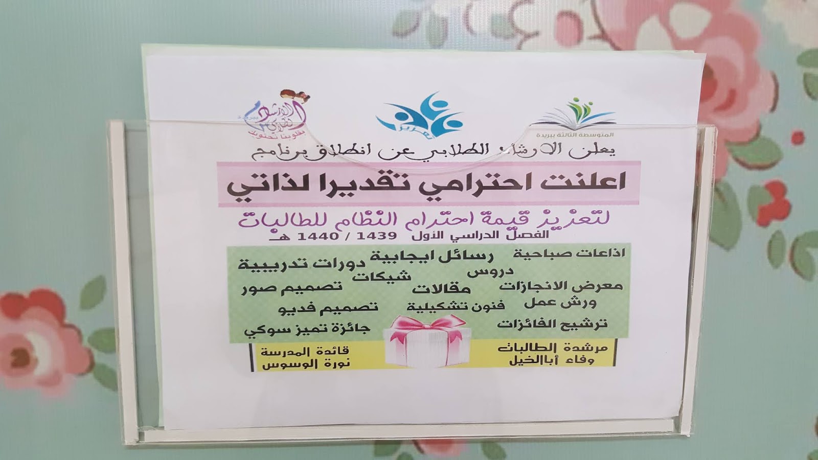 أعلنت احترامي جهاد اليافعي by iman a. أعددن طالبات التربية الميدانية إذاعة مدرسية صباح يوم الأحد الموافق 28 12 1436هـ عن تعزيز الاحترام عند الطالبات من خلال تقديرهن لذواتهن ولأنفسهن والمجتمع حيث استهلت الإذاعة بآيات من. دشنت جمعية ركاز حملة جديدة بعنوان تقدير ا لذاتي. مدرسة ثانوية الحريق أحلام الراشد.