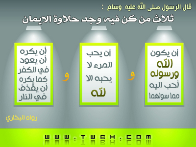 أن ي كون الل ه ور سول ه أح ب إل ي ه مم ا س و اه م ا وأ ن ي ح ب الم ر ء لا ي ح ب ه. ثلاث من كن فيه وجد حلاوة الإيمان. صالح الشامي 12 10 2018 وأن يحب المرء لا يحبه إلا لله alukah اط لع عليه بتاريخ 17 12 2019. ثلاث من كن فيه وجد بهن حلاوة الإيمان alukah اط لع عليه بتاريخ 17 12 2019.
