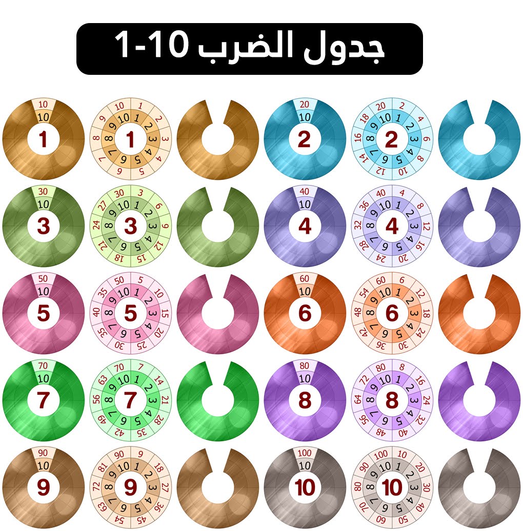 صور جدول الضرب كامل من 1 الى 10 بالعربي ومكتوب للاطفال جاهز للطباعة