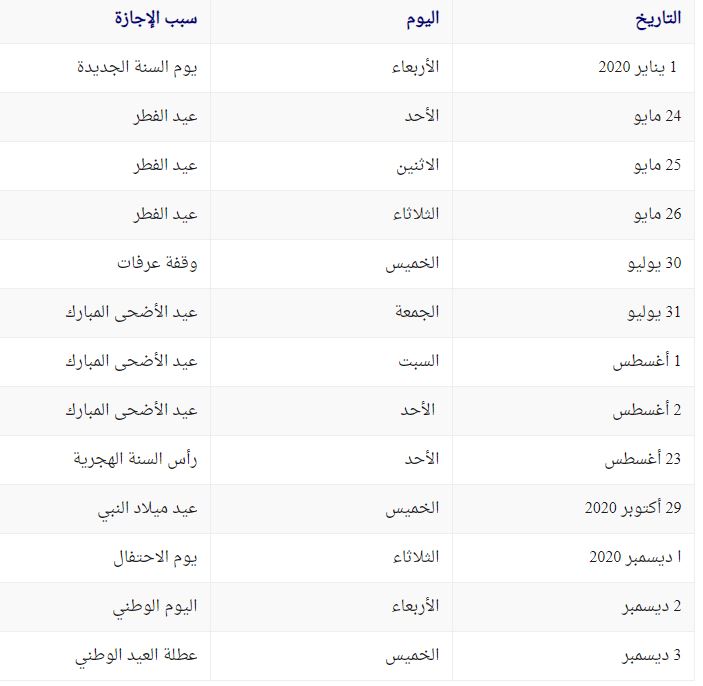 جدول الإجازات الرسمية في الإمارات 2020 قائمة العطلات التي تم الإعلان عنها طبقا للقرار الصادر من قبل الحكومة الإماراتية جريدة البوكس نيوز