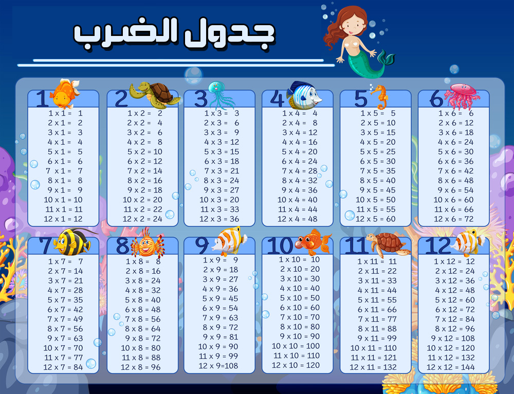 جدول الضرب بالعربي كامل مع طريقة الحفظ بسهولة المرسى